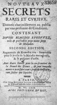 MonographieSecrets et remèdes éprouvez. Dont les préparations ont été faites au Louvre, de l'ordre du...