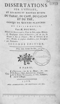 MonographieDissertations sur l'utilité et les bons et mauvais effets du tabac, du café, du cacao...