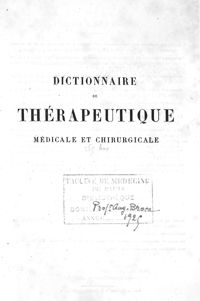 RéférenceDictionnaire de thérapeutique médicale et chirurgicale : comprenant le résumé de la médecine et de...