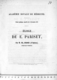 MonographieAcadémie royale de médecine, séance publique annuelle du 14 décembre 1847, éloge de E. Pariset