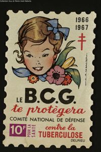 Image1966-1967. Le B.C.G. te protègera. Comité national de défense. 10F pour la santé. Contre la...