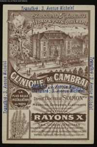 ImageClinique de Cambrai (directeur Docteur Solmon). Institut de Robusticité, hydro et physiothérapie. Radium et Rayons...