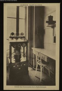 ImageClinique Saint-Maurice. Cabine des Commandes de la Radiothérapie.. Cliché Florentin Bourgade, Lyon. Phototypie M. Lescuyer,...