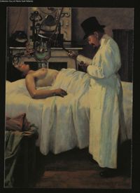 ImagePremiers traitements du cancer par rayons X. Peinture de G. Chicotot, 1908. Musée des Hôpitaux...