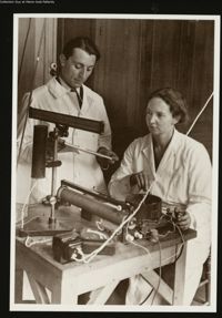 Image7. Frédéric et Irène Joliot-Curie dans le Laboratoire de physique de l'Institut du Radium, en...