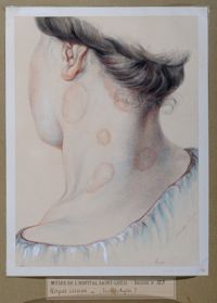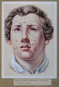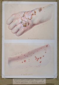 ImagePsoriasis syphilitique, syphilide corné, herpes syphilitique, favus lupinosa, pityriasis versicolor, impetigo syphilitique.