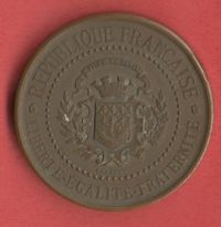 Objet physiqueAvers : REPUBLIQUE FRANCAISE LIBERTE EGALITE FRATERNITE. - Revers : ASSISTANCE PUBLIQUE ; BUREAU DE...