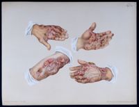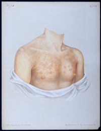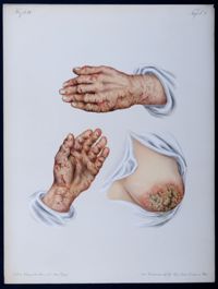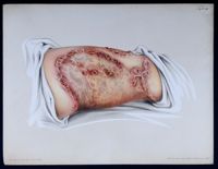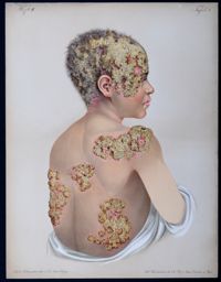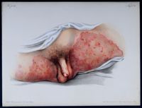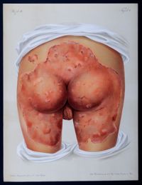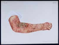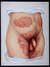 ImageEczema rubrum et impetiginosum cruris subsequa pachydermia Fuchs, seu fibroma papillare Virchow