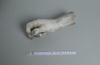 Objet physiqueMain gauche, du bras et de l'épaule. Le coude présente un renflement.