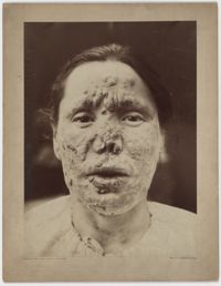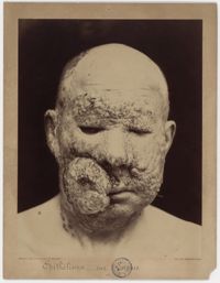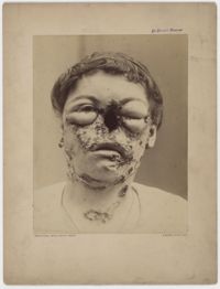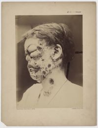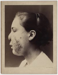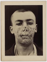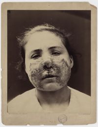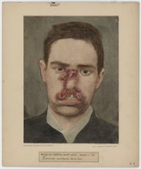 ImageHôpital Saint-Louis, service du Dr Besnier. Destruction de l'appareil nasal (avant traitement)