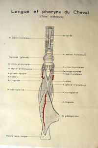 ImageLangue et pharynx du cheval (face inférieure). Encre aquarellée.