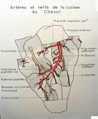 ImageArtères et nerfs de la cuisse du cheval. Encre aquarellée.