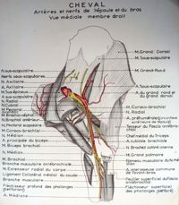 ImageCheval : artères et nerfs de l'épaule et du bras. Vue médiale, membre droit. Encre...