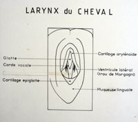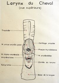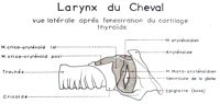 ImageLarynx du cheval : vue latérale après fenestration du cartilage thyroïde. Encre.