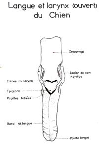 ImageLangue et larynx (ouvert) du chien. Encre.