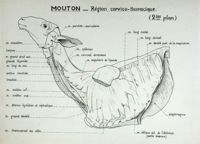 ImageMouton : région cervico-thoracique (2ème plan). Encre.