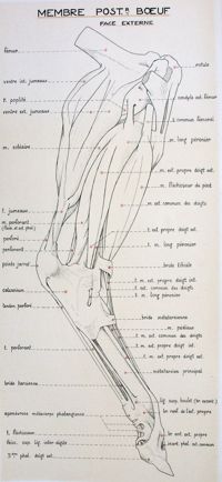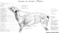 Imagemuscles du mouton (1er plan). Encre aquarellée.