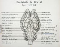 ImageEncéphale de cheval (vue ventrale). Dessin noir et blanc.