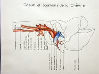Imagecoeur et poumons de la chèvre. Dessin aquarellé.