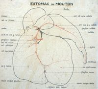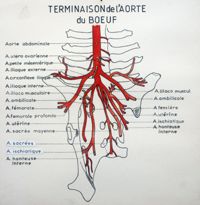 ImageTerminaison de l'aorte du boeuf. Dessin aquarellé.