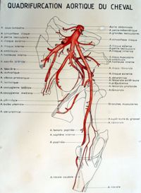 ImageQuadrifurcation aortique du cheval. Dessin aquarellé.