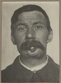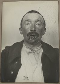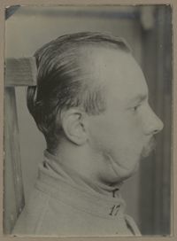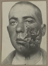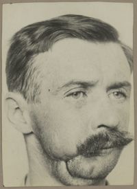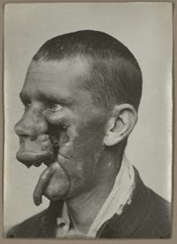Image[Portrait de profil d'un homme présentant une perte de substance au niveau du nez et...