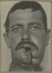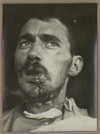 Image[Portrait de face montrant un traumatisme médio-facial avec ouverture béante sur les fosses nasales et...