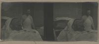 Image[Groupe. Au premier plan, un patient sur un brancard, présentant une large plaie de la...