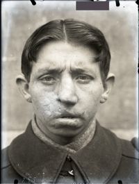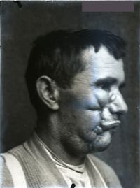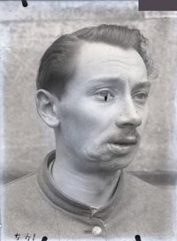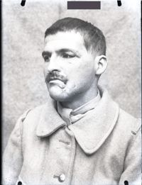 Image[Portrait de face après cicatrisation d'une importante plaie de la région médio-faciale et de la...