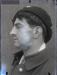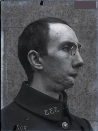 Image[Portrait de profil montrant une importante cicatrice de l'aile du nez à la commissure labiale,...
