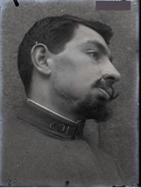 Image[Portrait de profil en contre-plongée à distance de l'intervention.]