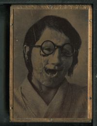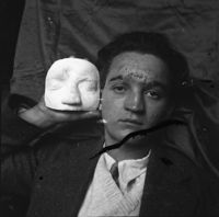 Image[Portrait d'homme de face présentant une cicatrice sur le front, posant avec son moulage en...