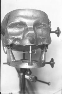 Image[Photographie de moulage en plâtre de la partie supérieure d'un visage.]