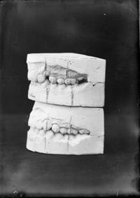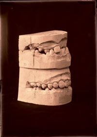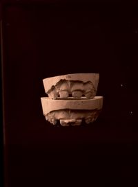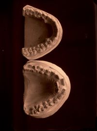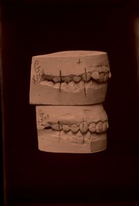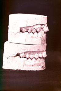 Image[Deux moulages dentaires du maxillaire supérieur, montrant l'évolution après traitement orthodontique d'une malposition de l'incisive...