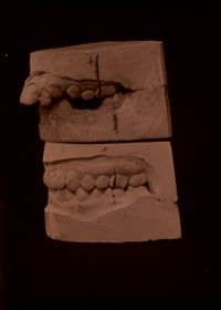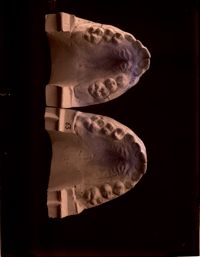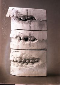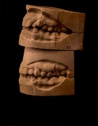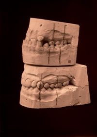 Image[Deux moulages dentaires du maxillaire supérieur, montrant l'évolution d'un diastème.]