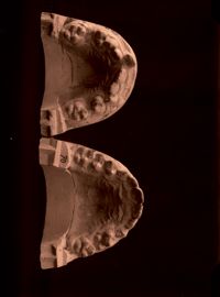 Image[Deux moulages dentaires du maxillaire supérieur, montrant l'évolution après traitement orthodontique de malpositions.]