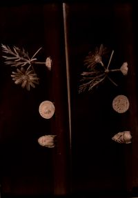 Image[Deux prises de vue superposées: dos d'un scarabée, avers d'une médaille, une fleur vue de...
