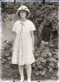 Image[Photographie d'une jeune fille en pied, de face, dans un jardin.]