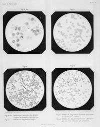 ImageModifications successives des globules sanguins de grenouille; globules de sang humain
