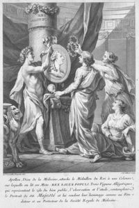 ImageApollon, Dieu de la médecine, attache le médaillon du roi à une colonne