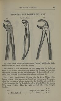 Image[Fig.72. Pince pour les racines des molaires, droites et gauches / Fig.73. Pince pour les...