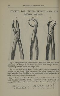 Image[Fig.85. Pince pour les racines supérieures, en forme de baïonnette, légèrement incurvée / Fig.86. Pince...