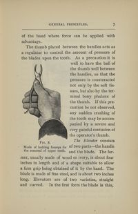 Image[Fig.8. Manière de tenir les pinces pour extraire les dents de la mâchoire supérieure]