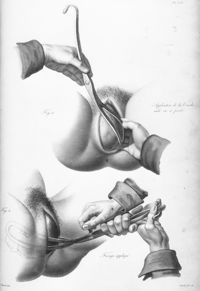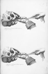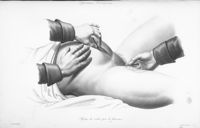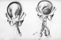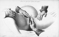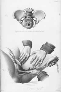 ImageÉcartement des pubis après la section du fibro-cartilage; extraction de la tête par le forceps...