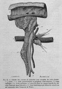 ImageCalculs des canaux du pancréas avec atrophie de cette glande