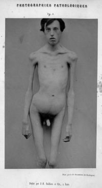 ImageJeune garçon affecté, depuis l'âge de six ans, d'une paralysie atrophique graisseuse qui a détruit...