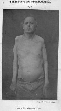 ImageSujet vue de face, chez lequel, vers l'âge de sept ans, l'atrophie musculaire graisseuse progressive...