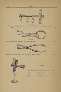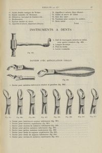 Image[Fig.4607. Clé de Garengeot / Fig.4608. Pinces pour crampons / Fig.4609. Pince emporte-pièce pour digue...