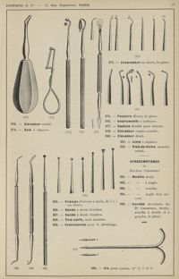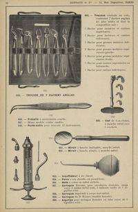 Image[Fig.945. Trousse de 7 daviers anglais / Fig.946. Précelle à pansements courbe / Fig.950. Clef...