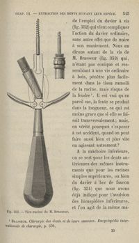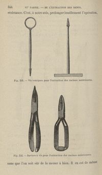 Image[Fig.351. Vis coniques pour l'extraction des racines antérieures / Fig.352. Daviers à vis pour l'extraction...